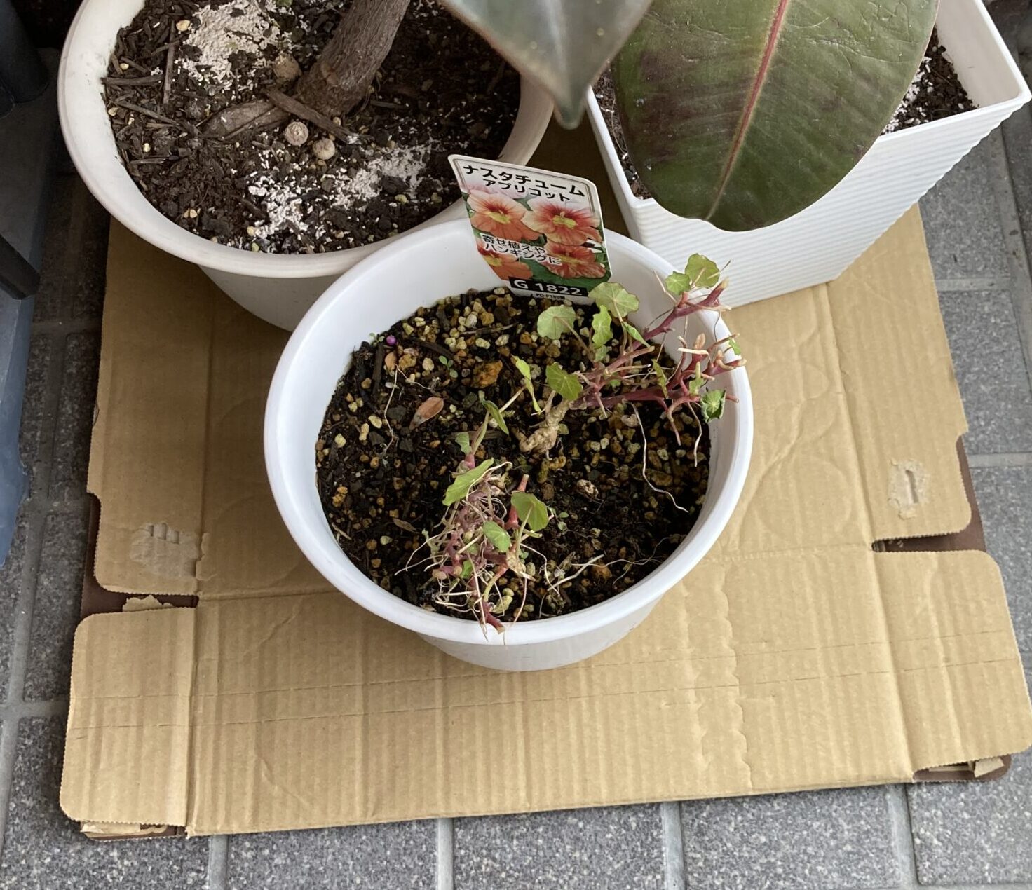ナスタチュームは、冬越し中はずっと玄関の片隅に置いたままでした。